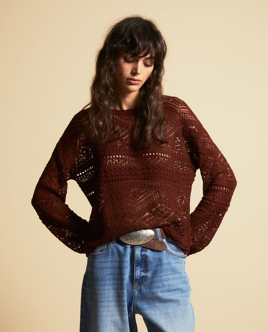 Camisola de malha rendilhada