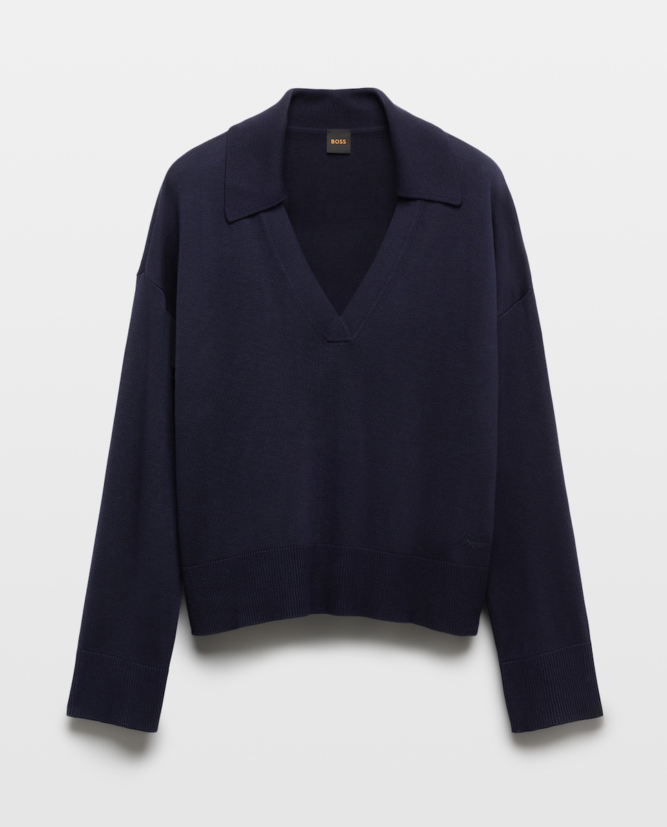 Camisola de Malha com Manga Comprida e Decote em Bico