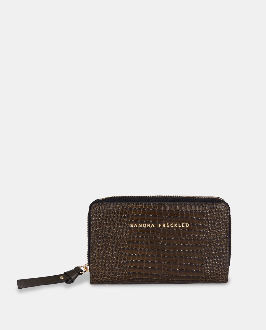 Porta-Moedas em Pele Gravada com Fecho de Correr