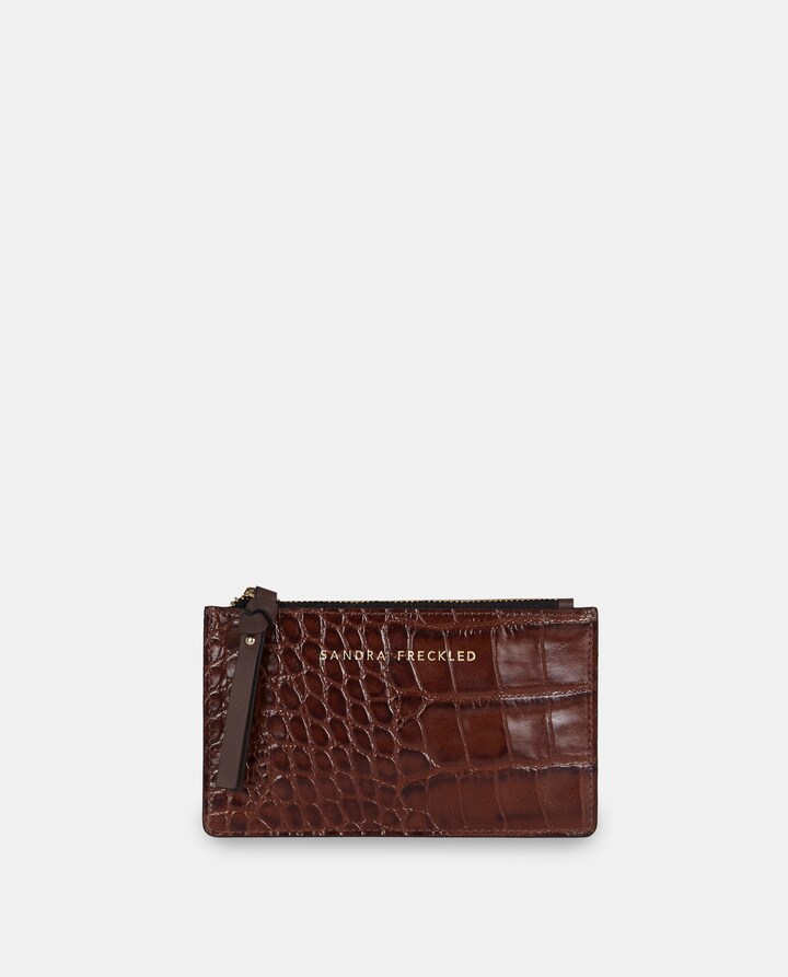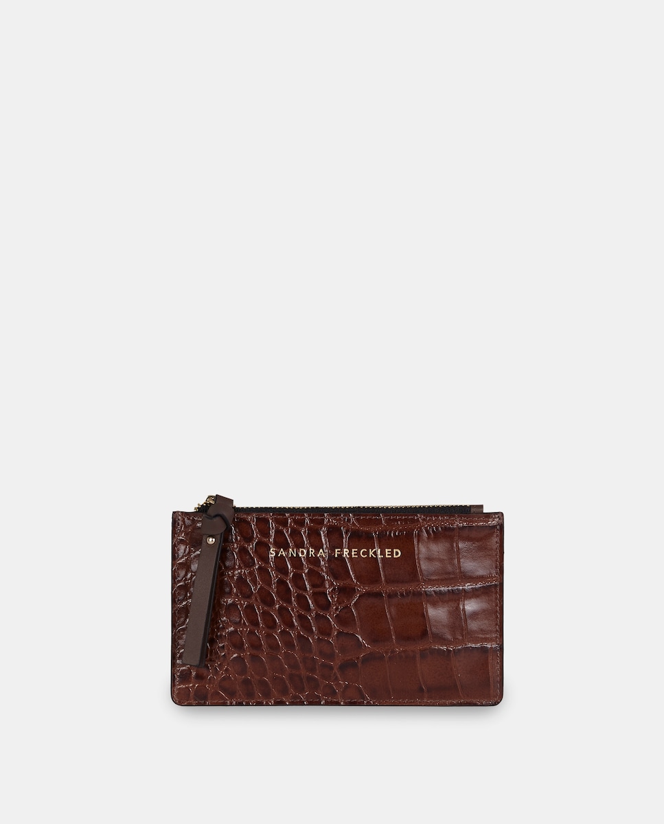 Porta-Moedas Plano em Pele Gravada com Fecho de Correr