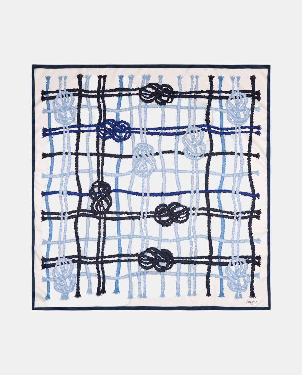 Lenço em Formato Carré com Estampado de Cordas e Nós Marinheiros.