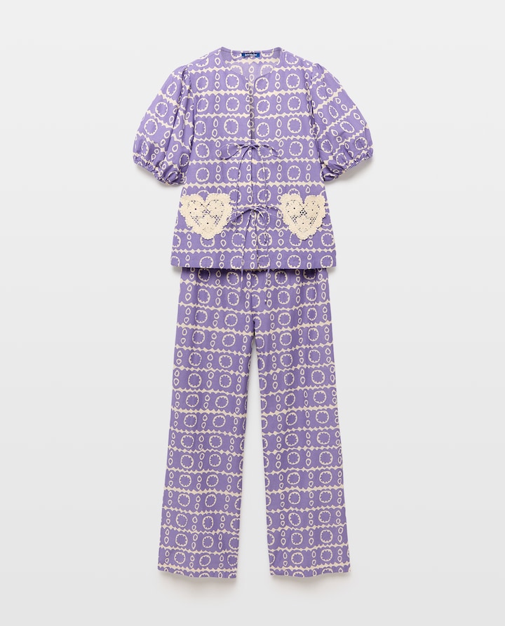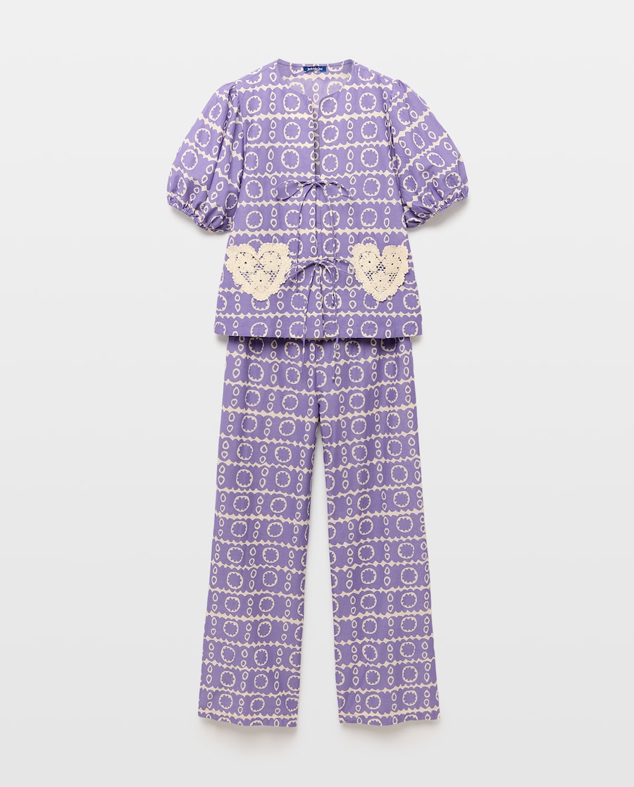 Conjunto de Manga Curta com Estampado de Bolsos de Crochet