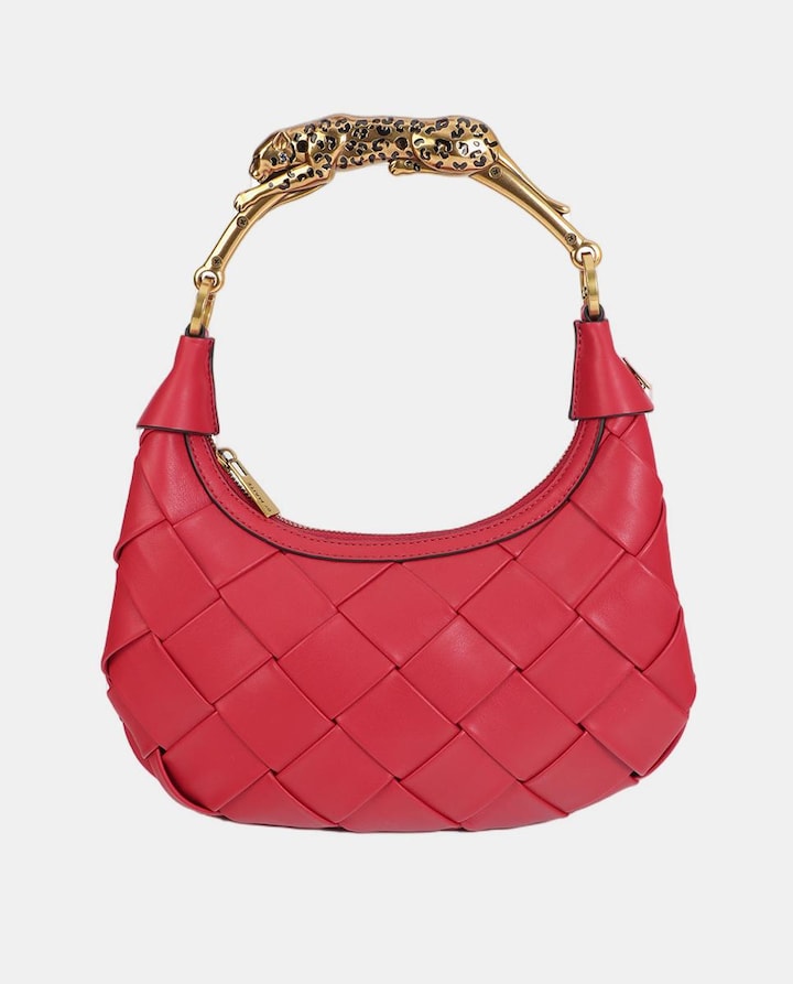 Mala Entrançada de Meia-Lua com Alça e Animal Print de Leopardo