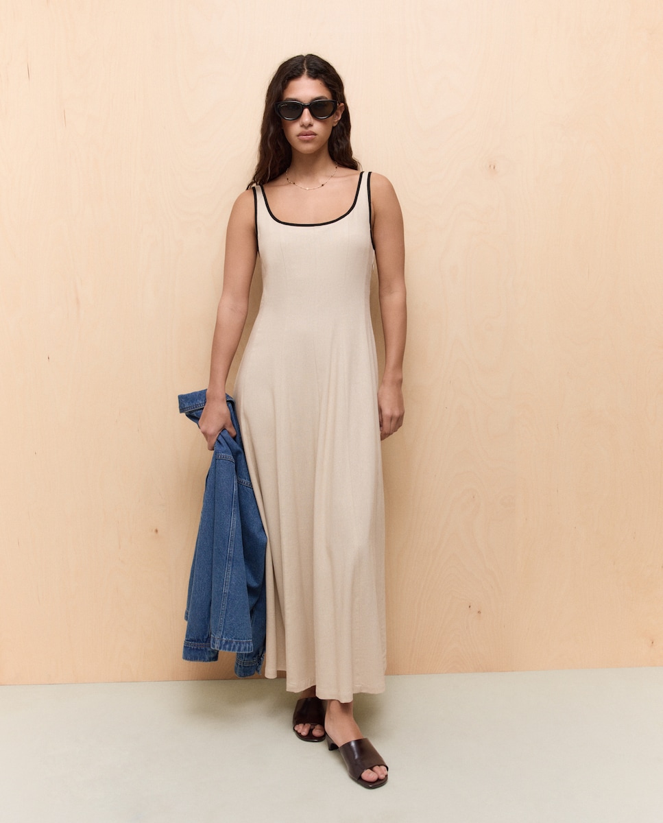 Vestido Midi com Vivos em Contraste
