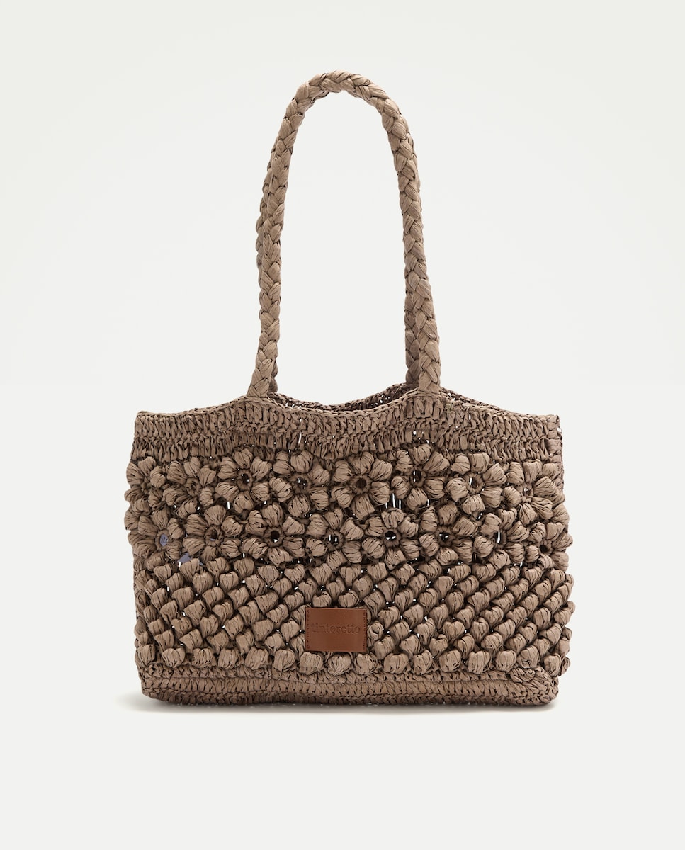Mala Shopper Média com Efeito de Ráfia e Estampado Floral