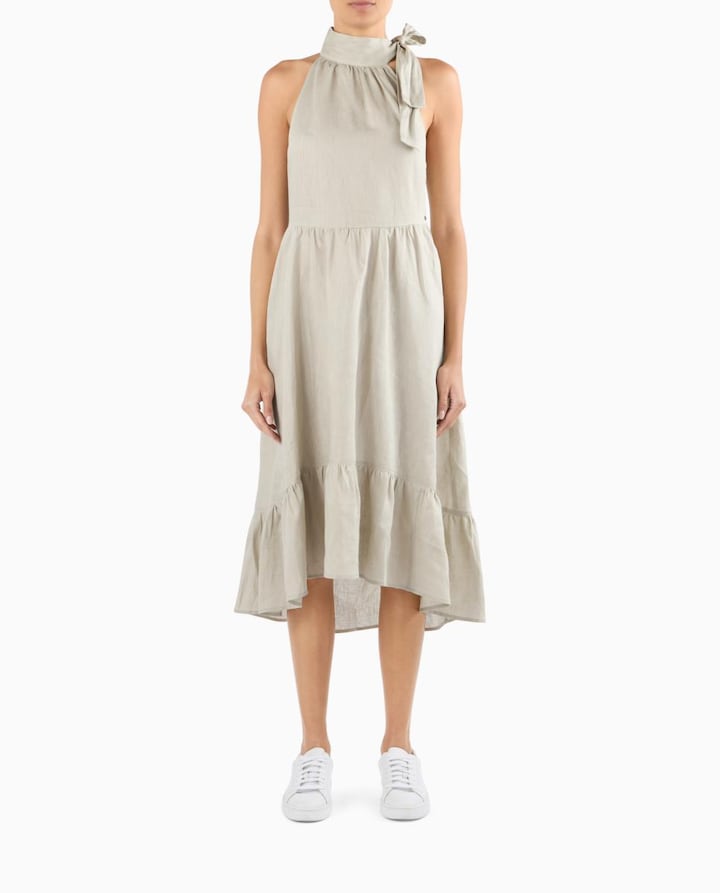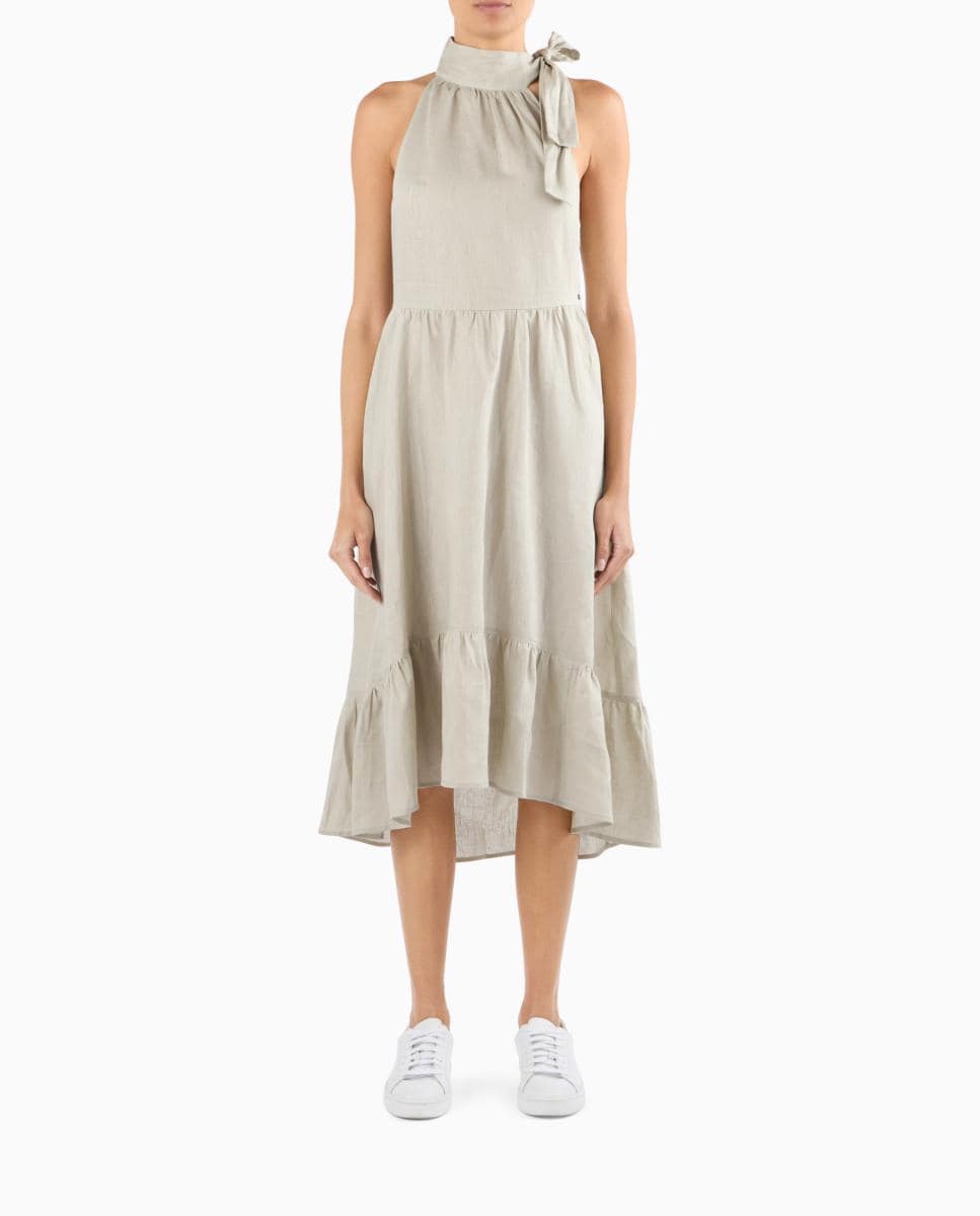 Vestido Midi de Linho com Gola Halter
