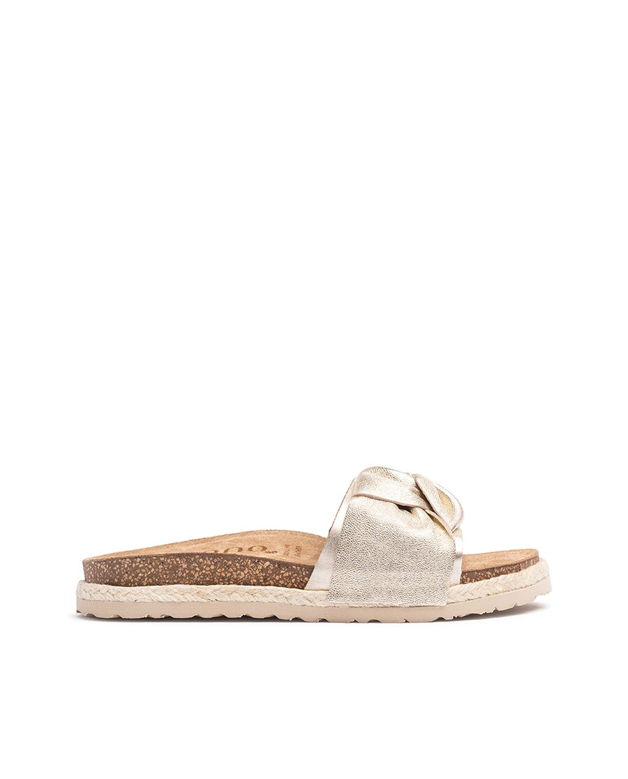As sandálias planas ARENA 004 destacam-se pelo seu design original com um elegante detalhe de laço que lhe confere um toque único. Feitas em pele de alta qualidade, combinam moda e conforto para te oferecer uma experiência única ao caminhar. O seu design fresco e versátil tornam-nas na opção perfeita para os dias mais quentes, permitindo que os teus pés se mantenham frescos sem sacrificar o estilo.
