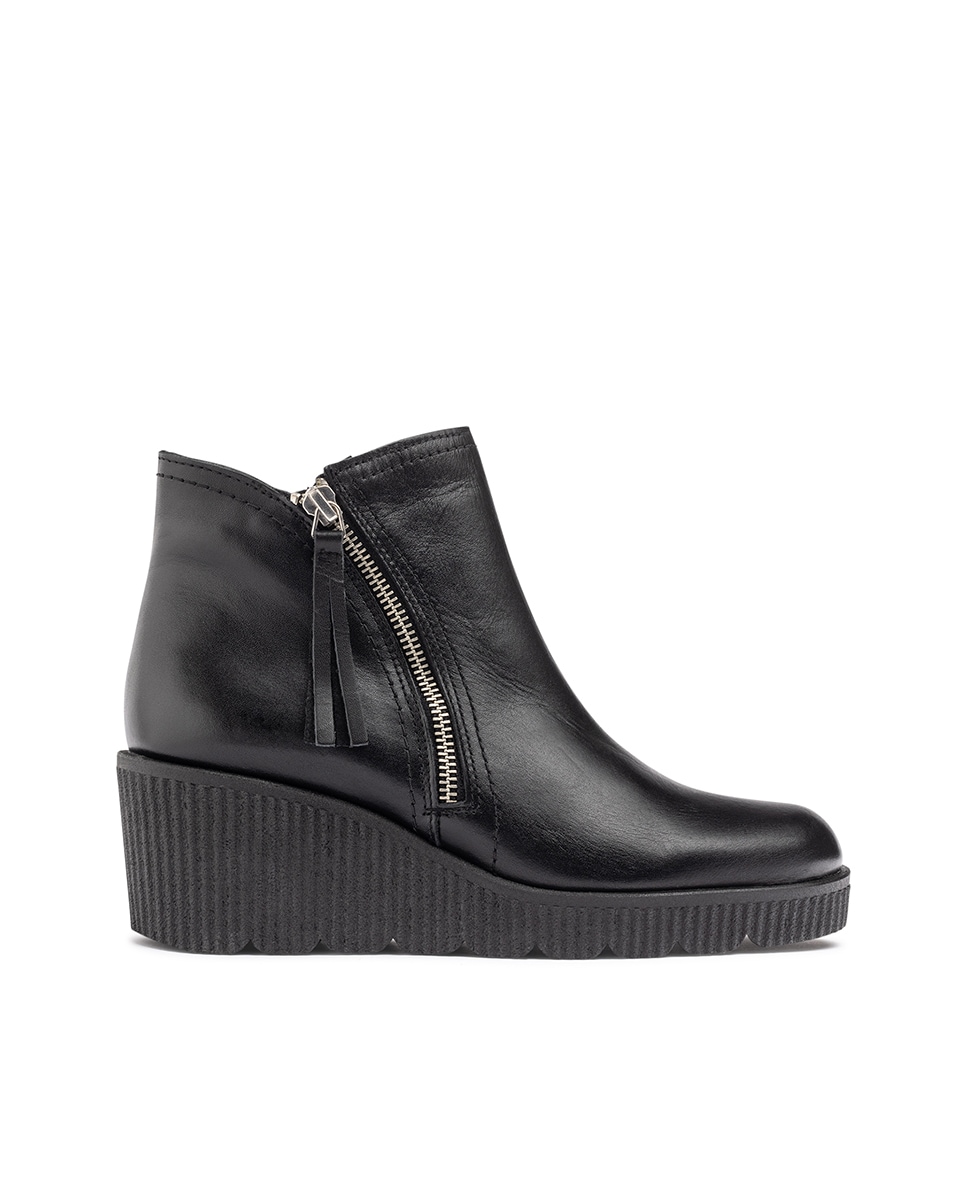 As botins de cunha MADONA 007 prometem o máximo conforto no teu dia a dia. O seu design minimalista fazem dele um imprescindível no nosso armário, destacável a sua sola de um tom bege com relevo. Fecho zip para facilitar o calce. Corte em pele bovina e elaborado em Espanha de forma artesanal e com tintas vegetais respeitosas com o meio ambiente.