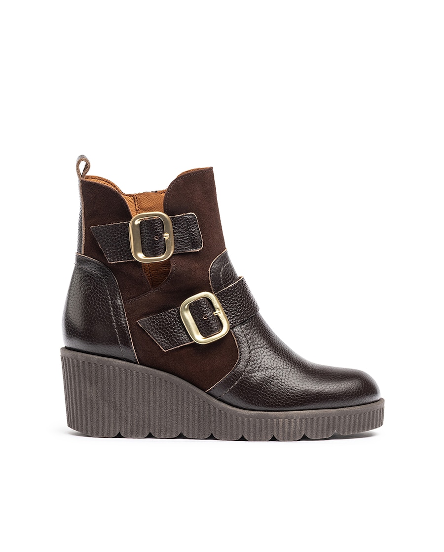 As botas de cunha MADONA 011 combinam uma estética atual com o conforto que oferece a sua plataforma dentada de cunha de 6 cm. O seu design é definido pela presença de duas fivelas decorativas metálicas, que aportam carácter sem perder funcionalidade. Graças à sua construção leve e ao seu design envolvente, este modelo é ideal para o uso diário, permitindo-te ganhar altura com estabilidade e estilo.