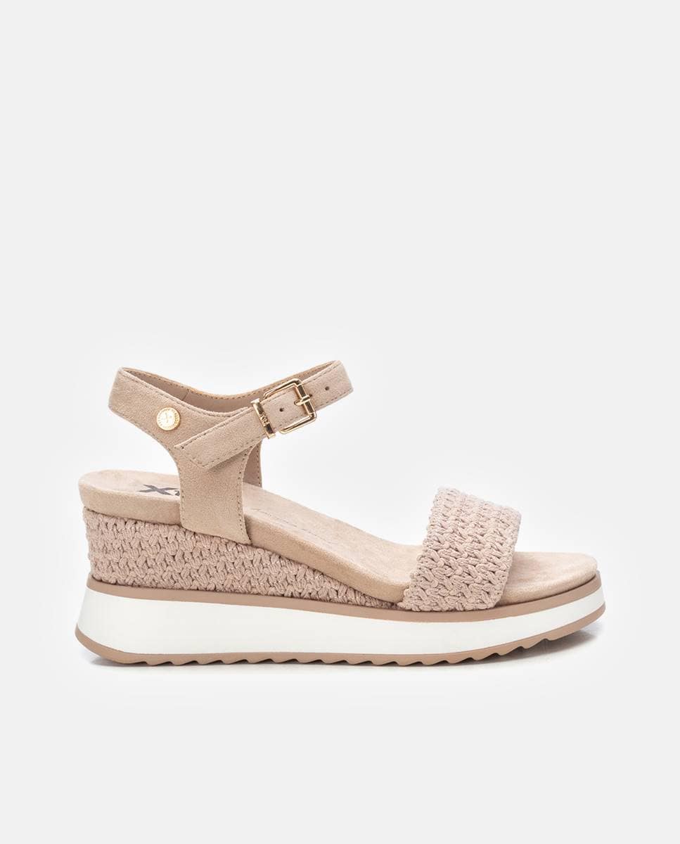 Sandálias de mulher, da marca Xti. Fabricadas em material têxtil de crochet. Cunha forrada com o mesmo material que o modelo, super confortável para o dia a dia. Fixação no torno com fivela metálica. Sola antiderrapante. Este modelo obteve o certificado vegano pela organização mundial PETA (Organização dos direitos dos animais).