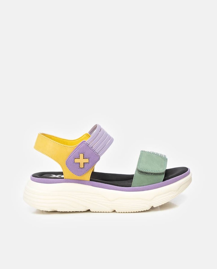 Sandálias de mulher, da marca Xti. Fabricadas em material que imita a pele combinada com tiras elásticas no tornozelo. A manutenção é feita com fecho adesivo, fáceis de calçar e super confortáveis para usar todo o dia. Combinadas com bonitas cores. Sola desportiva e antiderrapante. Este modelo obteve o certificado vegano pela organização mundial PETA (Organização dos direitos dos animais).