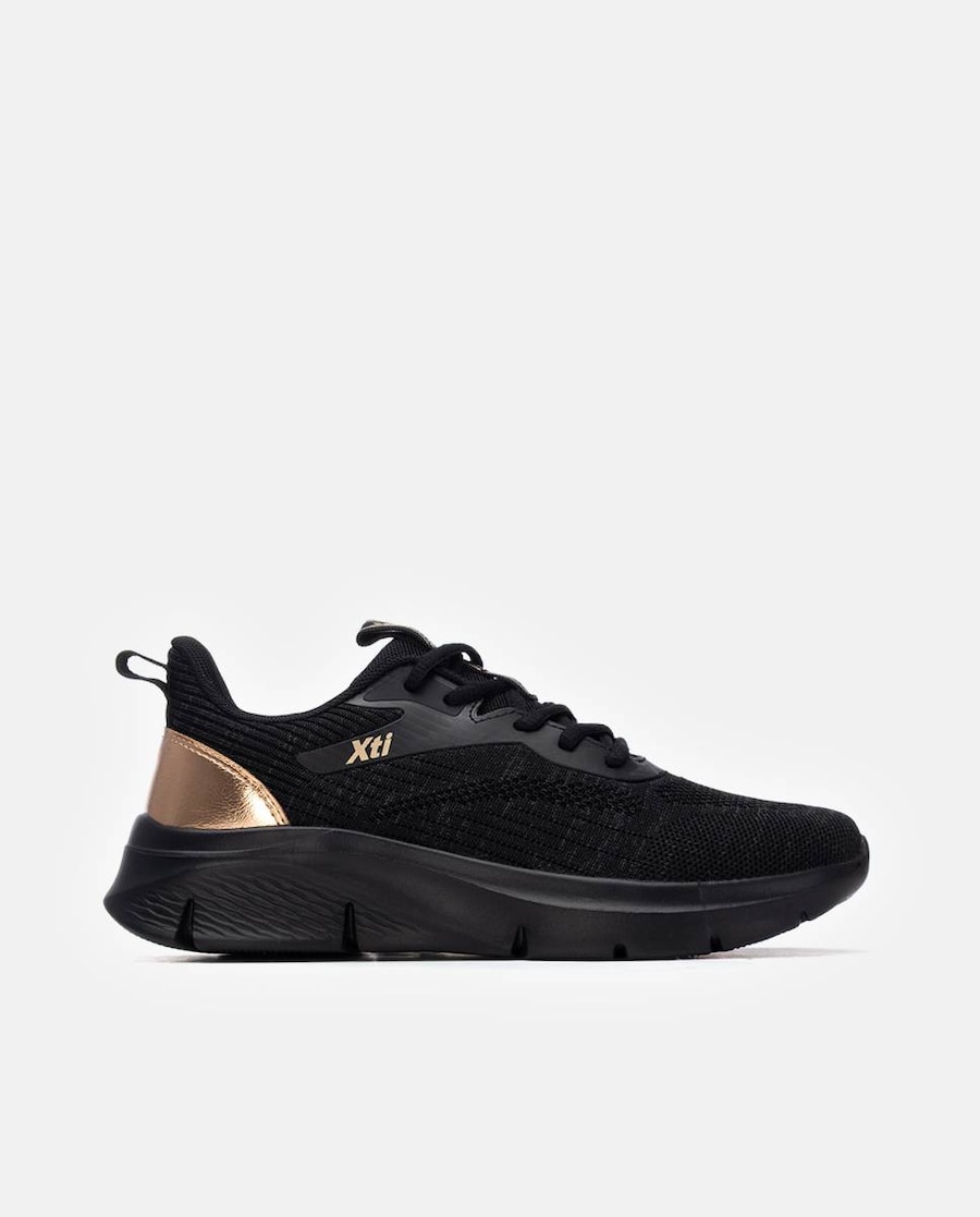 Sapatilhas de mulher, da marca Xti. Fabricadas em material que imita a pele. Com fecho de correr lateral e atacadores ajustáveis para maior conforto. Detalhes metalizados para elevar o seu look de inverno. Sola de borracha antiderrapante. Com palmilha extraível. Este modelo obteve o certificado vegano pela organização mundial PETA (Organização dos direitos dos animais).