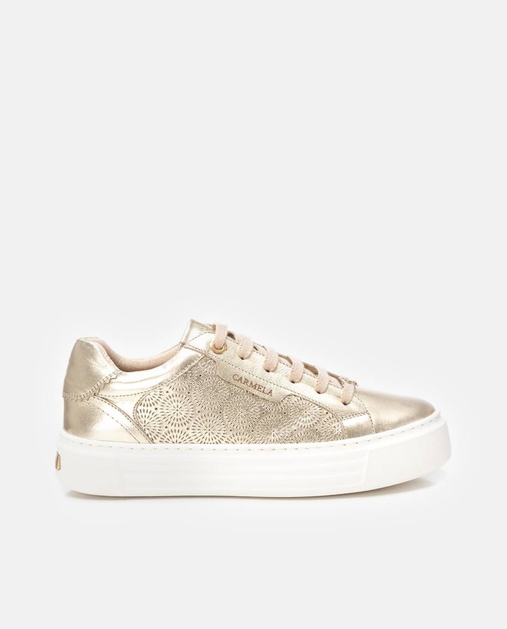 Sapatilhas de mulher, marca Carmela. Fabricadas em pele de alta qualidade. Fecho por atacadores ajustáveis para maior conforto. Design perfurado decorativo nas laterais. Conforto e simplicidade para esta temporada. Planta confortável, sola antiderrapante. Com palmilha extraível.