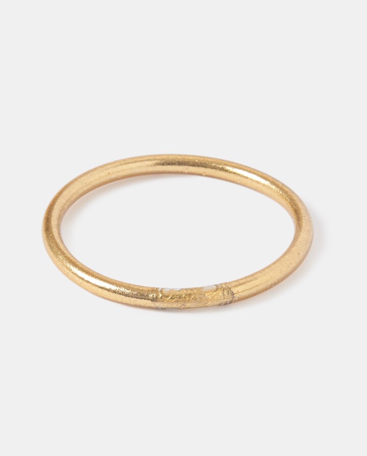 Pulseira dourada Pan de Oro com gravação LUCKY and RICH feitas à mão. As pulseiras Pan de Oro difundem amor, sorte, proteção, unidade e boa fortuna para quem as usa.