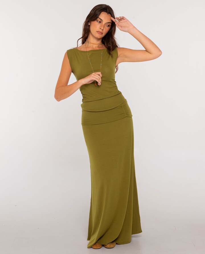 Saia midi em tecido de malha com viscose como fibra principal: fresca, respirável, leve e suave. Faixa de 12 cm de largura com franzido de 7,5 cm. Pode ser combinada com o top a condizer OUR MOMENT da mesma coleção para um conjunto coordenado.
