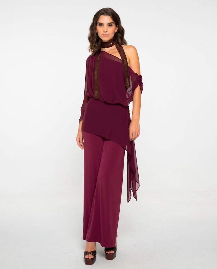 Macacão confecionado em um tecido de malha elástica, seu detalhe mais especial é a gasa multiposições que envolve o corpo e pode usar de diferentes formas conforme o estilo que quiser.
