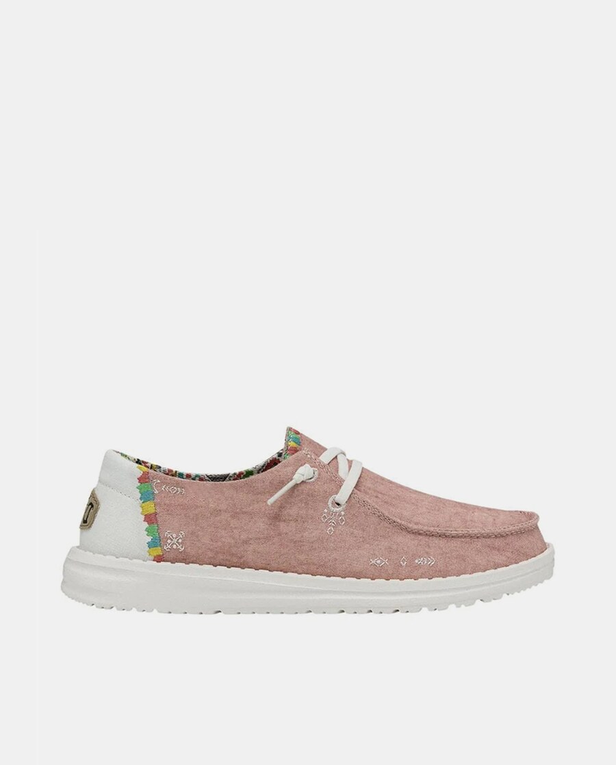 Sapatos de mulher com atacadores confecionados em tecido de jeans com efeito lavado e com detalhes de crochet bordados à mão, para um look único. Conforto assegurado graças ao nosso sistema Easy-On e nossa sola patente UltraLIGHT EVA. Incluem palmilhas ergonómicas extraíveis de viscoelástica, forradas em pele. Lavável à máquina (frio).