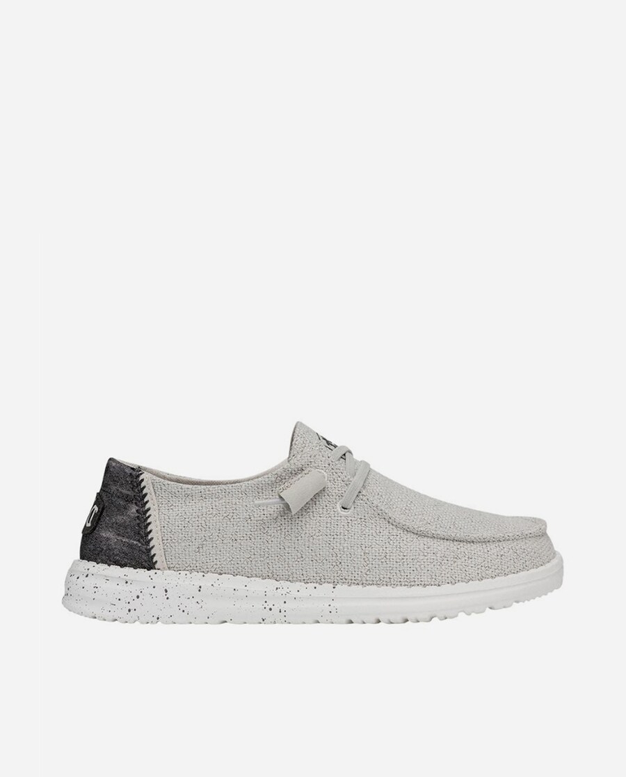 As WENDY WOVEN foram elaboradas com uma parte superior têxtil, tecida com malha de virgulilha, também conhecida como "malha de beisebol", muito respirável e leve, inspirada no verão. Dispõem do Sistema Easy-On, com cordões elásticos que não se atam, e a sua sola de espuma EVA é leve e muito flexível. Incluem palmilhas de espuma removíveis. Laváveis à máquina (em frio).