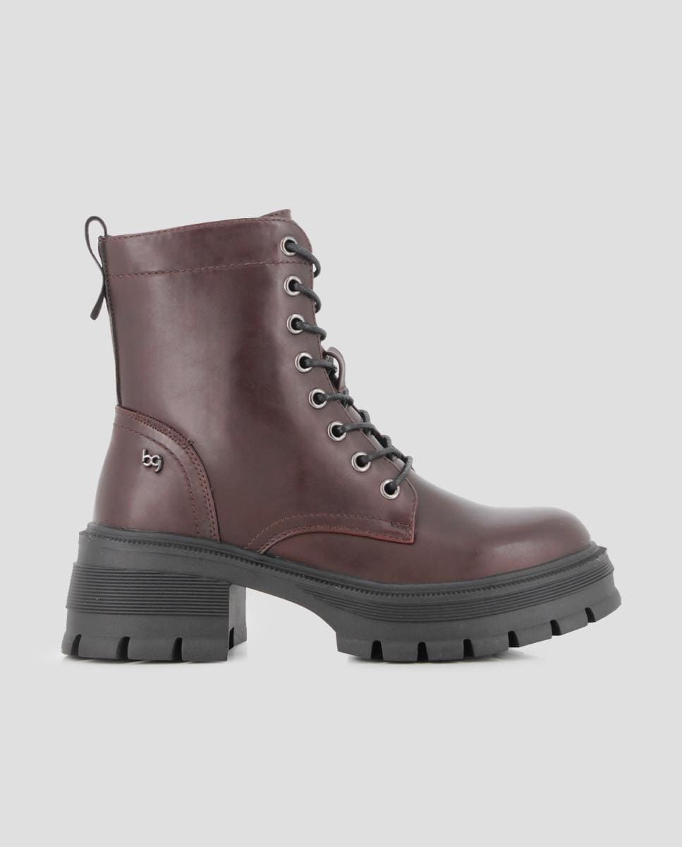 Botins para mulher estilo combate em pele sintética com plataforma e fecho zip.