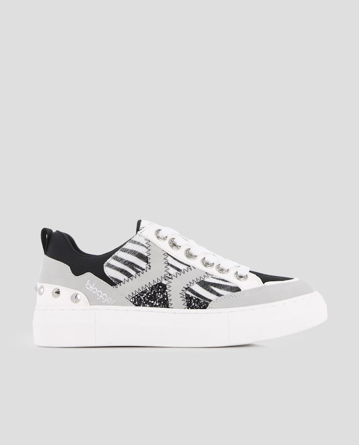 Sapatilhas casuais para mulher em material sintético estampado e com purpurina.