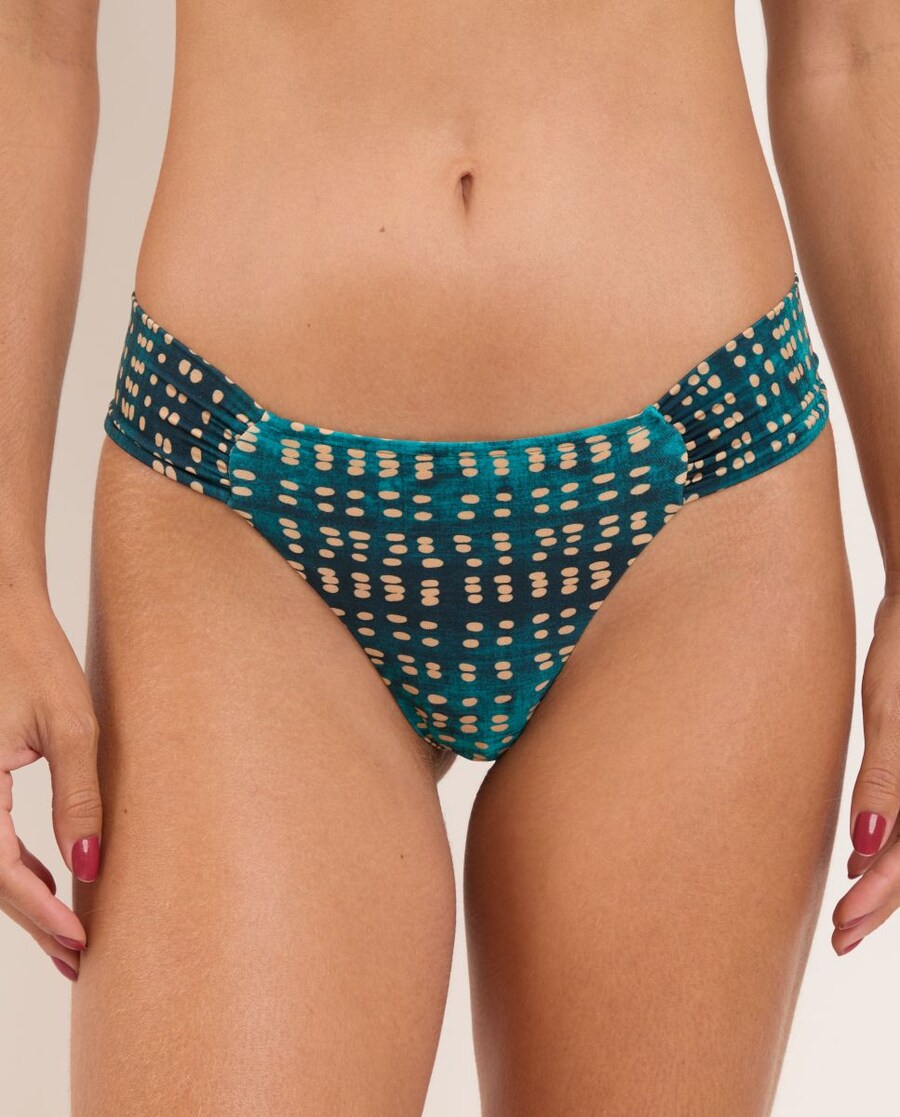 Cueca de biquíni corte brasileiro em tecido estampado aos poás.