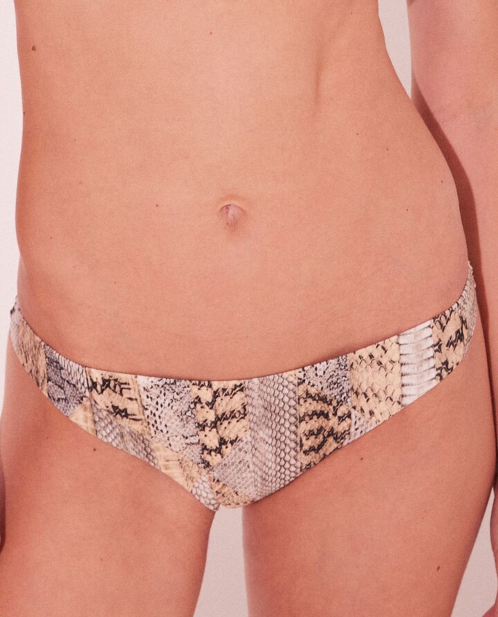 Cueca de biquíni corte brasileiro em tecido estampado.