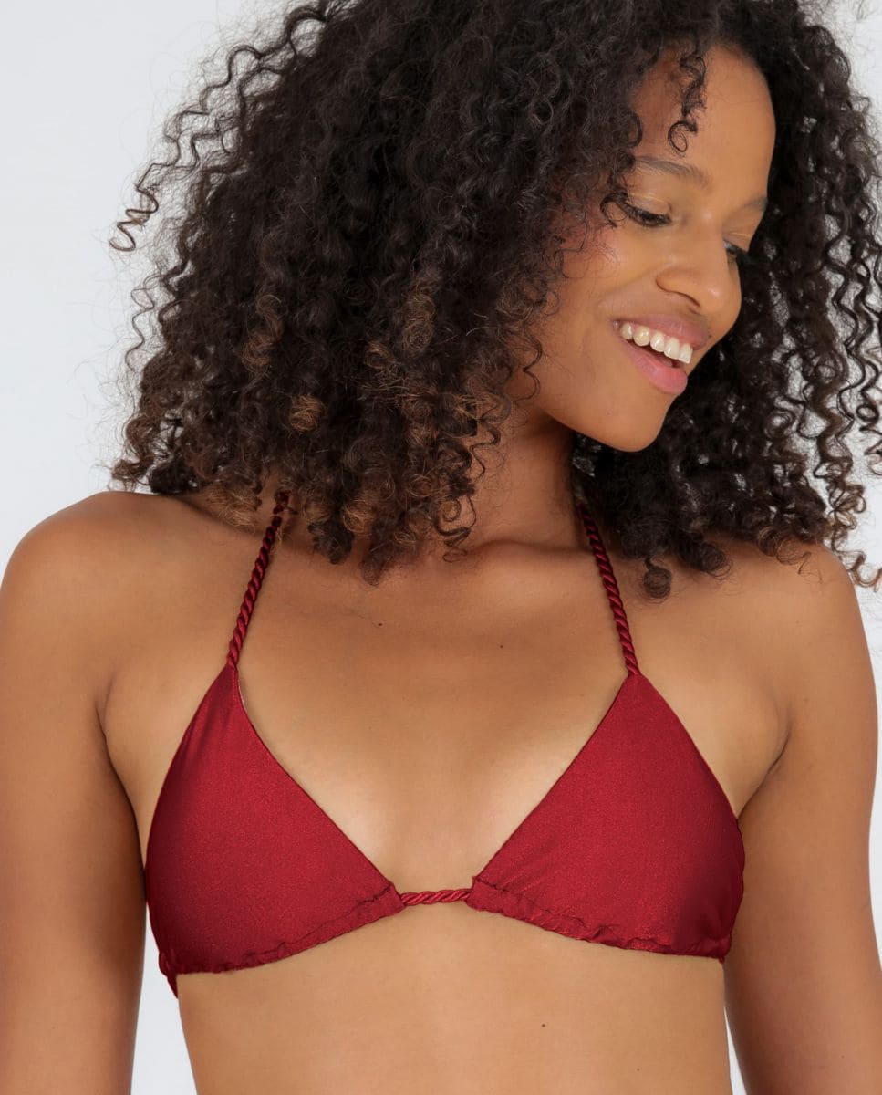 Top de biquíni com forma de triângulo em tecido liso com enchimento. Disponível em várias cores.