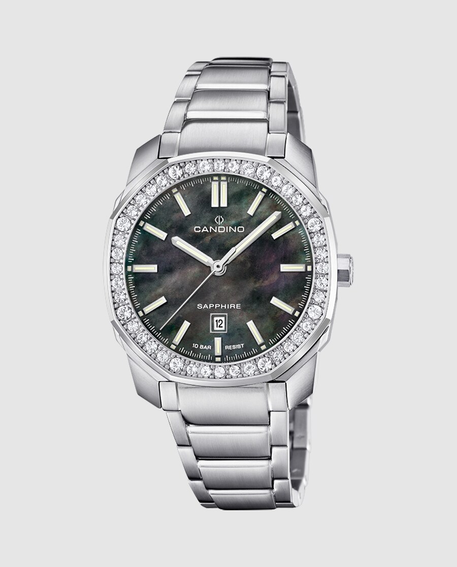 Relógio Candino Swiss C4756/8 para mulher. Com caixa de aço zircónitas e cristal safira, equipado com pulseira de aço inoxidável 316l.