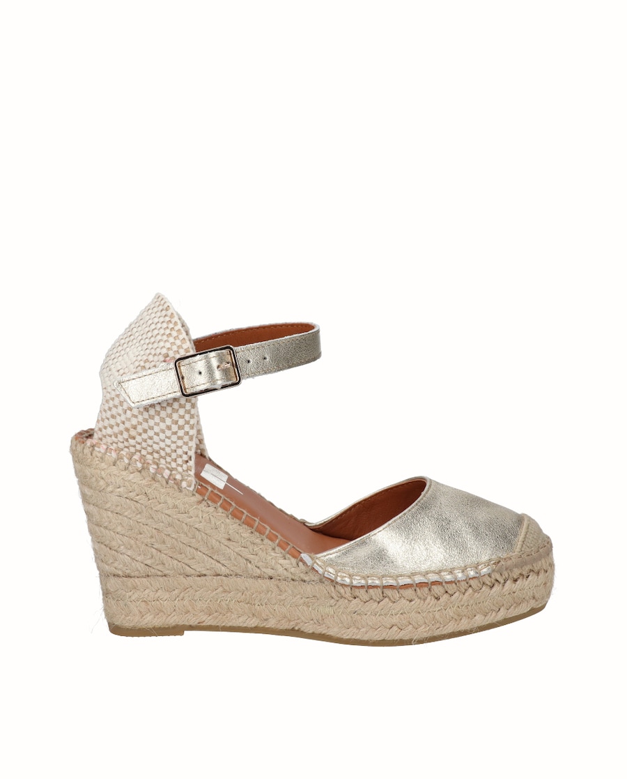 Alpercatas valencianas de cunha alta de juta de 9 cm, dos quais 6,5 cm são de cunha e 2,5 cm de plataforma; fabricadas em pele e tecido de alta qualidade, com pulseira ao tornozelo e fecho com fivela ajustável para facilitar a fixação ao nosso pé. Palmilha de pele super acolchoada. Conforto, durabilidade e versatilidade de um calçado 100% espanhol. Conta com a garantia de qualidade de Alpercatas Viguera.