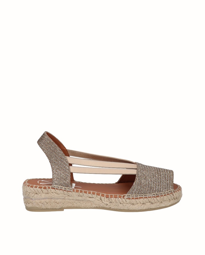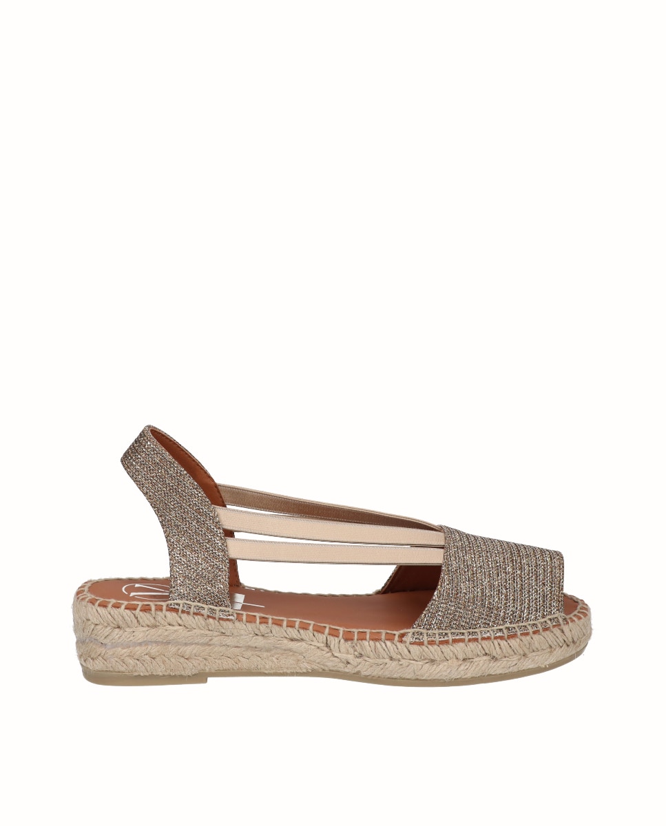 Sandálias planas Yuteflex de 3 cm aproximadamente, muito leves e flexíveis, fabricadas em têxtil brilhante de melhor qualidade e com palmilha de pele acolchoada. Incorpora elásticos para um ajuste ótimo. Comodidade, durabilidade e versatilidade de um calçado 100% espanhol. Conta com a garantia de qualidade de Alpargatas Viguera.