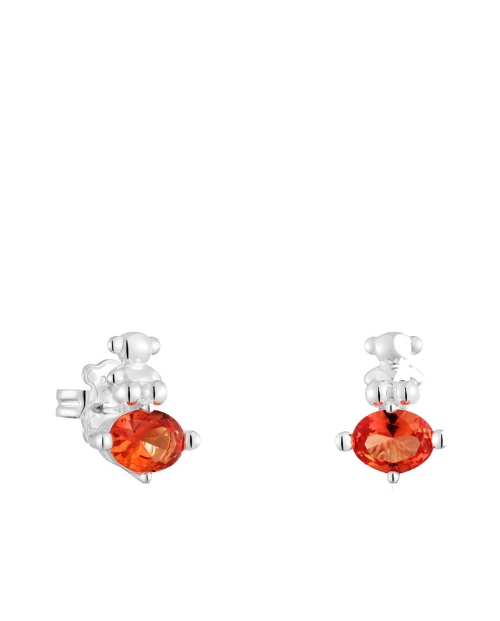 Brincos Bold Bear Lgg com Urso de Prata e Safira Laranja Criada em Laboratório