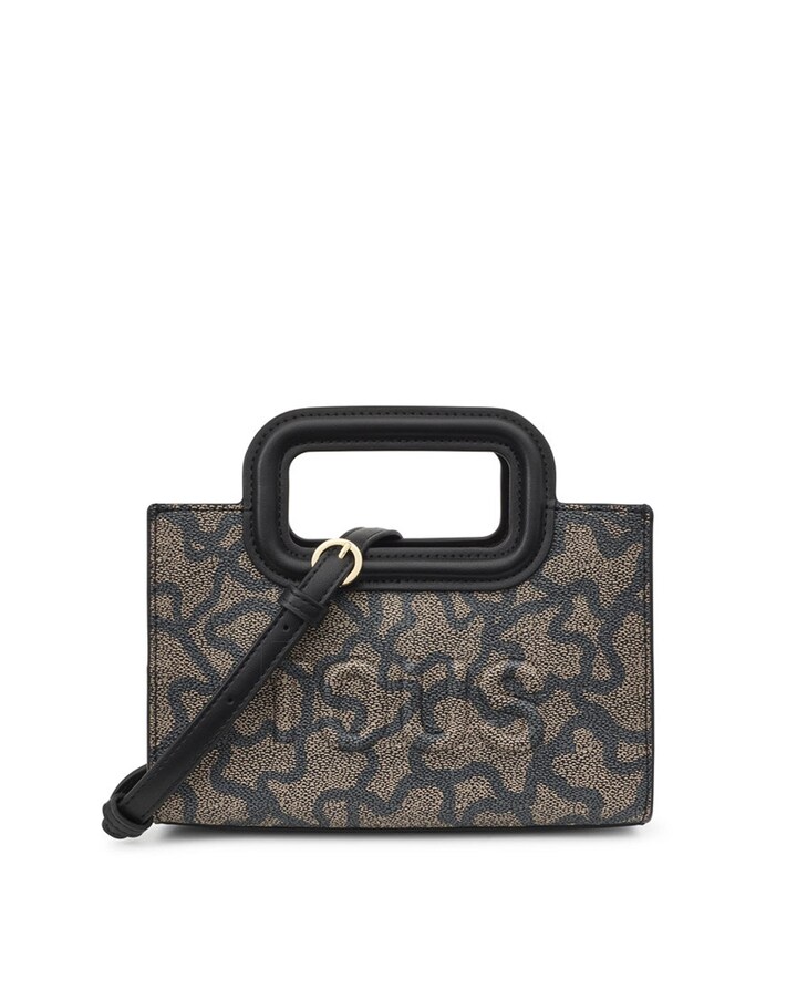 Mala mini tiracolo TOUS Kaos Icon em lona com estampado Kaos com detalhes de pele sintética. Fecho com botão magnético. Alças de mão fixas e alça tiracolo ajustável e destacável. Medidas (altura x largura x profundidade): 13 x 19 x 8,5 cm.