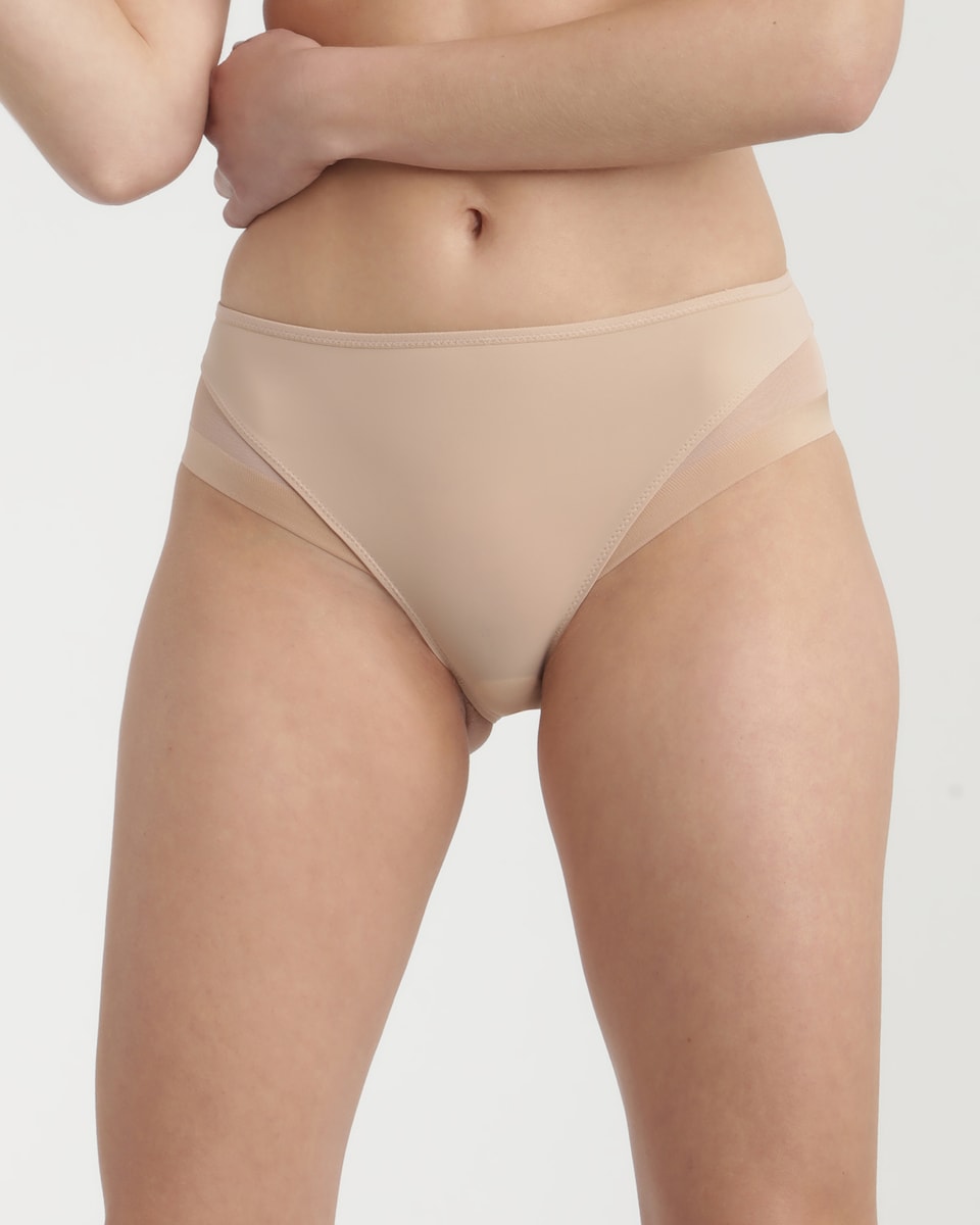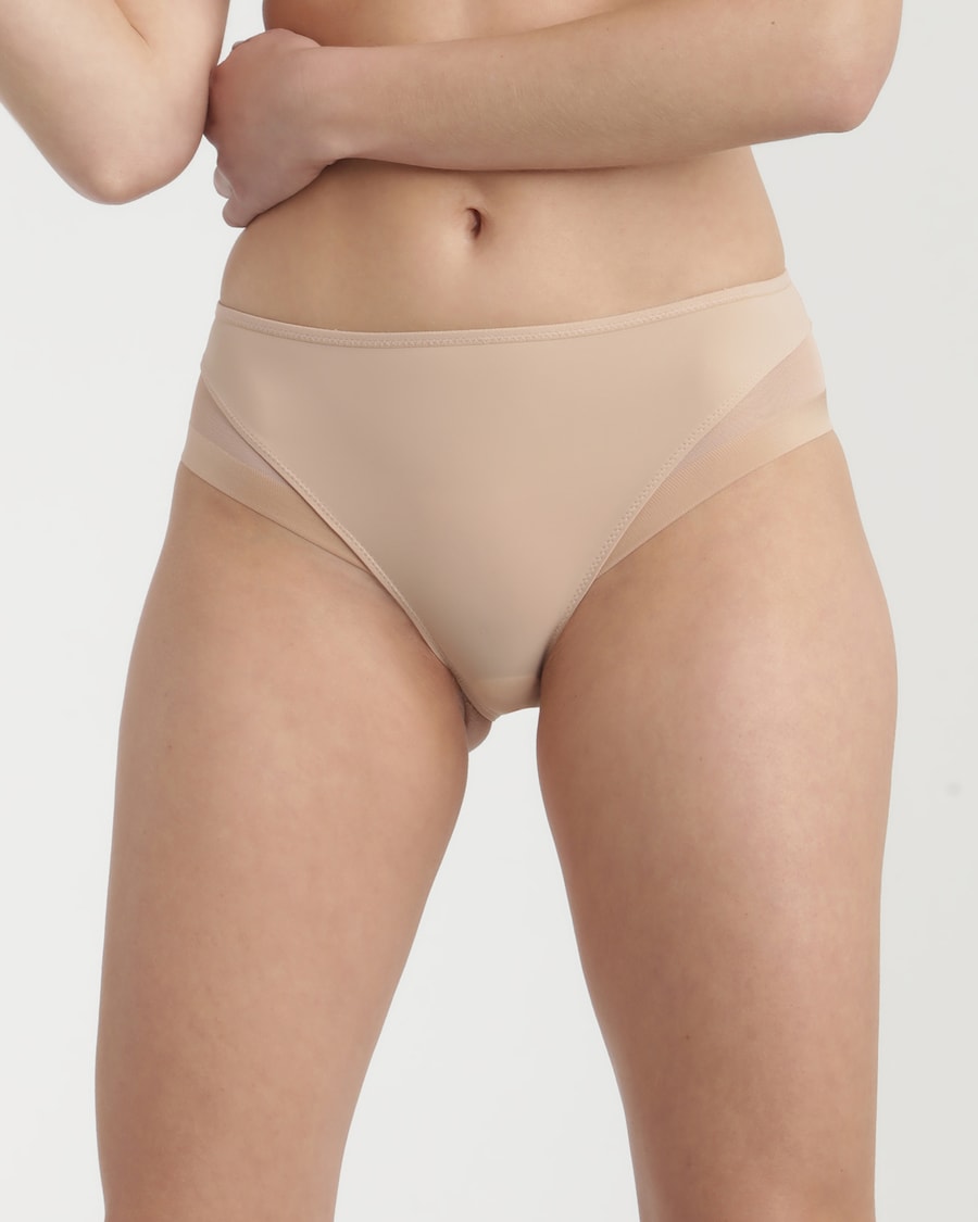Corte moderno. Tecido de tule na parte posterior e frontal para conseguir que seja invisível sob a roupa. Entreperna de algodão para maior conforto.