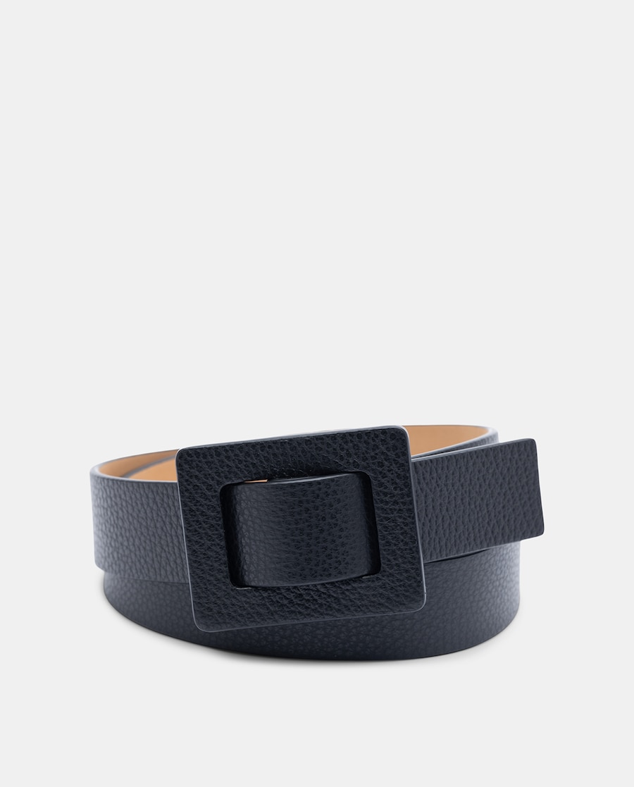 Cinto com Fivela Quadrada de Pele de Bovino