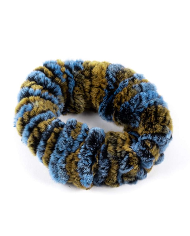 Gola de pele de REX com pelo rasado em azul e castanho multicolor. Convertível em gorro quando puxa pelos pompons. Todos os produtos são fabricados um a um artesanalmente nas instalações de Espanha por profissionais do setor da pele altamente qualificados. Tudo isso fabricado com peles 100% de origem espanhola de muito alta qualidade.