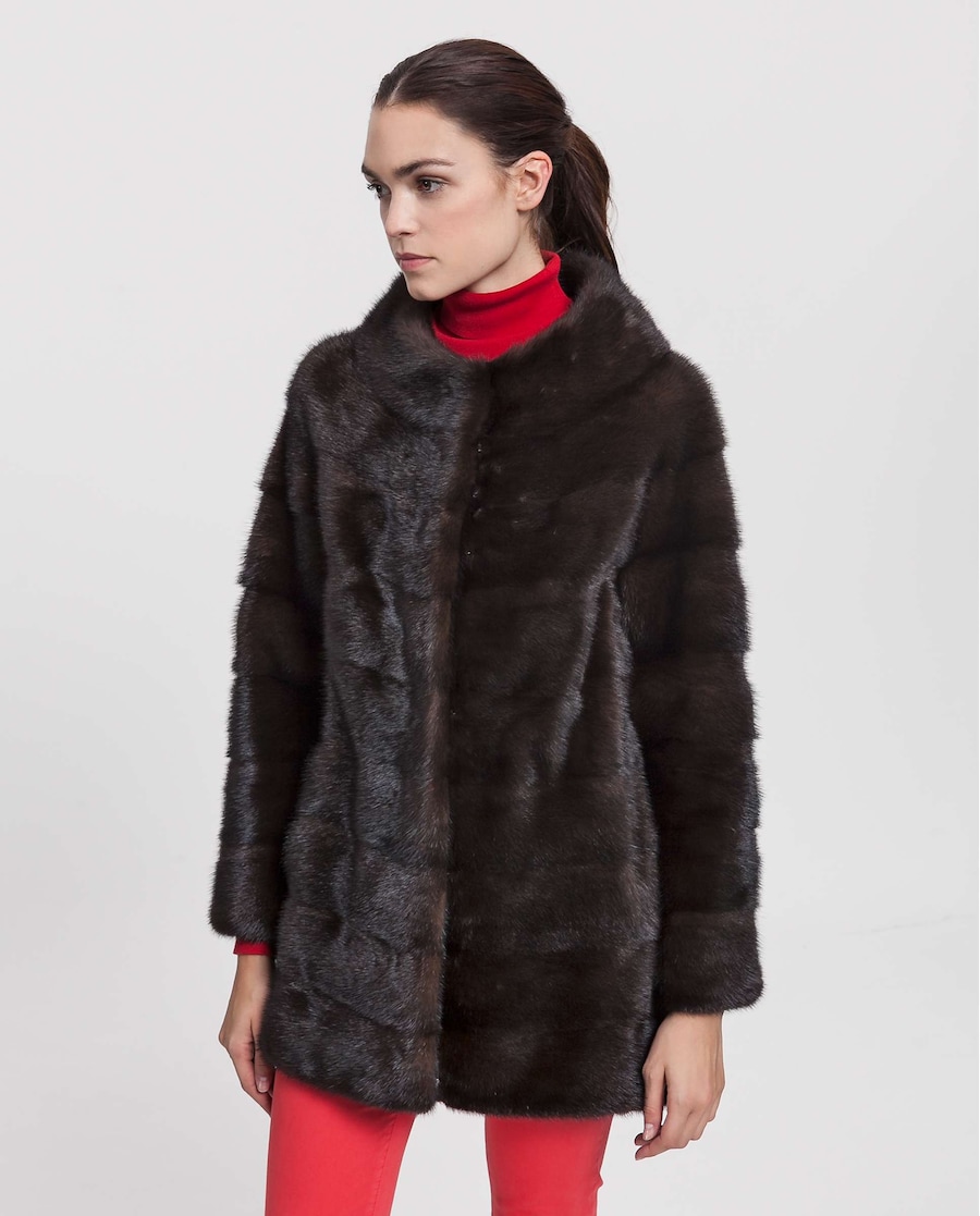 Sobretudo de mulher De La Roca Saga de vison horizontal com gola barco.