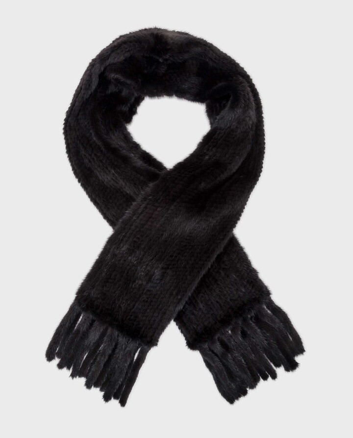 Cachecol estola comprida Da La Roca Saga de pele de vison com pelo tricotado na cor preta. Todos os produtos são fabricados um a um artesanalmente nas instalações de Espanha por profissionais do setor da pele altamente qualificados. Tudo isso fabricado com peles 100% de origem espanhola de muito alta qualidade.
