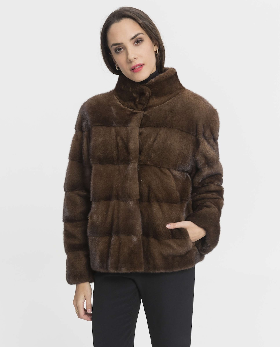 Casaco de mulher De la Roca de vison Saga castanho em horizontal.