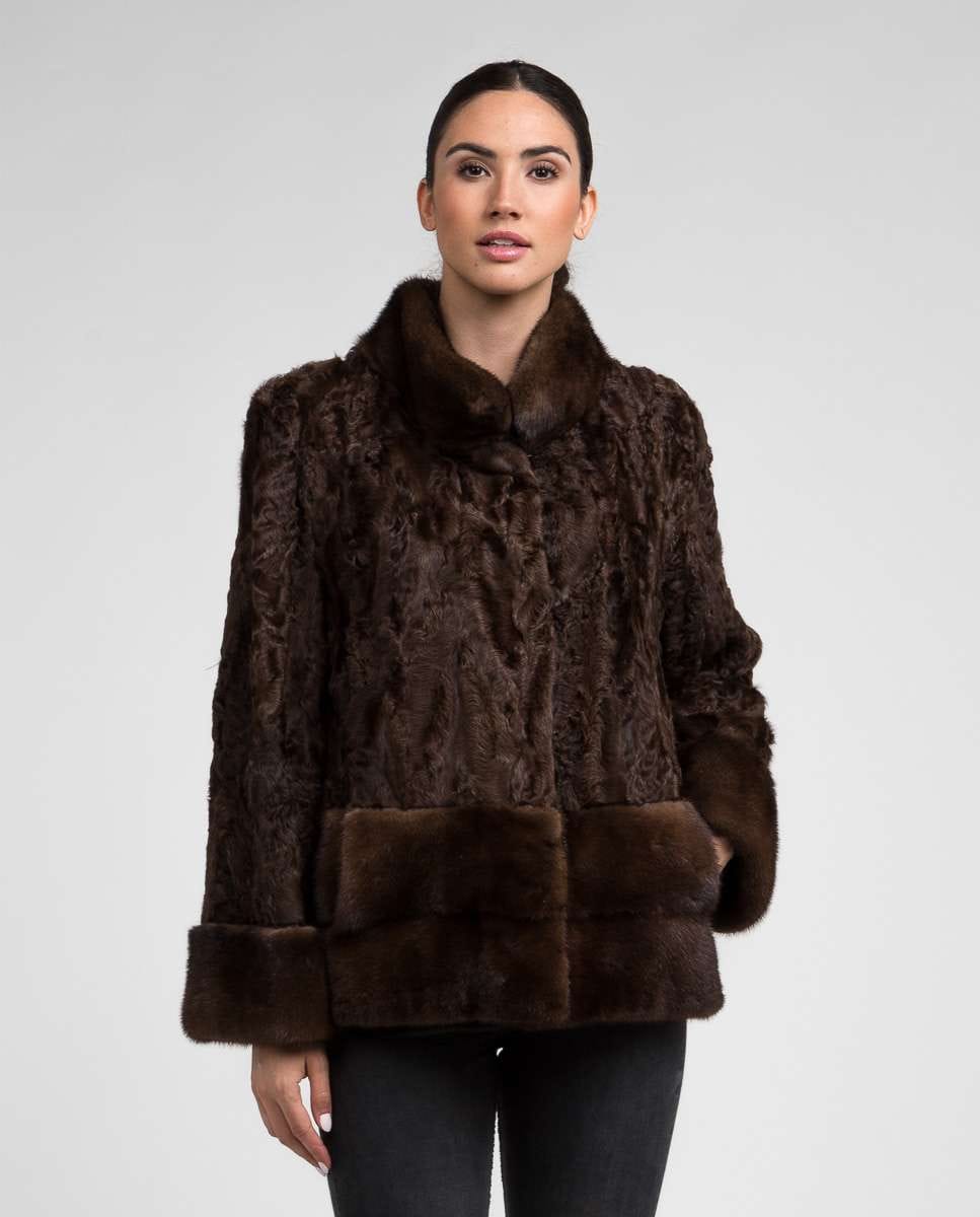 Casaco em Pelo de Tianjin e Vison com Gola Levantada