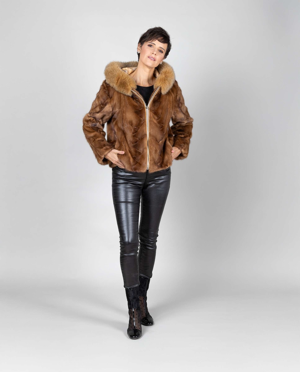 Casaco em Pelo de Vison com Capuz de Raposa