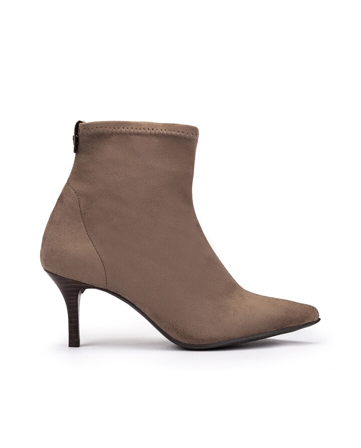 Botins de mulher de tecido em taupe. Trata-se de um modelo favorecedor e fácil de calçar, graças à sua elasticidade. Um design clássico e sofisticado que poderás usar com tudo.