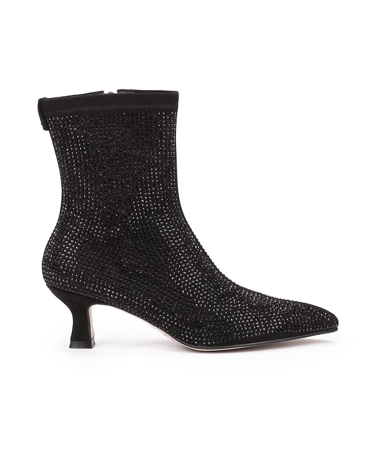 Botins de mulher com tacão e brilhos. Um design sofisticado e elegante apto para eventos e para usar no dia-a-dia. A altura do tacão é perfeita para usá-los confortavelmente durante todo o dia.