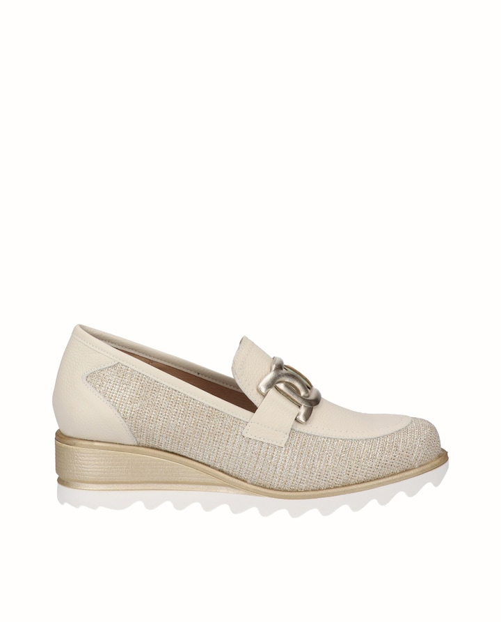 Sapatos estilo mocassins com cunha de EVA de 4.5 cm de altura. Fabricados em pele da melhor qualidade e com palmilha de gel acolchoada. Resultam confortáveis e muito leves. Conforto, durabilidade e versatilidade de um calçado 100% espanhol. Conta com a garantia de qualidade da marca D´Chicas.