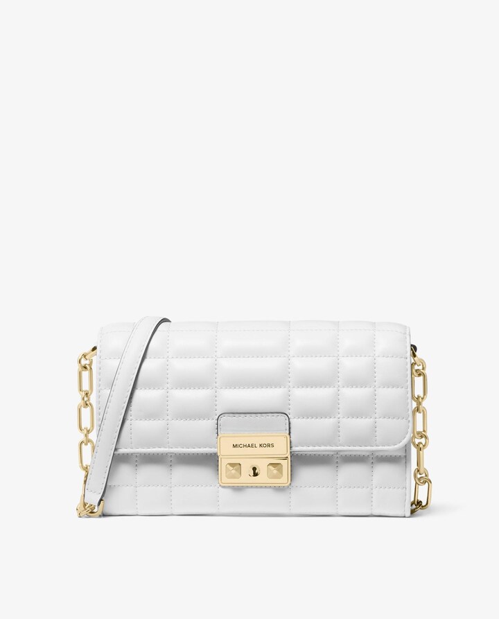 A nova adição à cobiçada família Tribeca é uma mala elegante e chamativa que transborda estilo. Foi fabricada com mestria em pele flexível com um acabamento acolchoado clássico que adiciona textura aos looks de dia a dia. A silhueta fina é completada com um interior impecável com bolsos e uma tira de corrente de elos removível, por isso oferece funcionalidade e sofisticação. Código do fornecedor: 32S4G2RC9L.