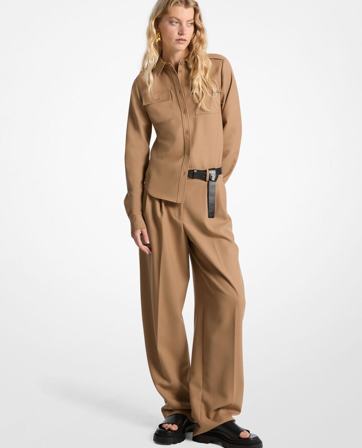 Os bolsos duplos com patch e o tom neutro versátil conferem um ar funcional a esta camisa. A elegante silhueta ajustada fica ótima com as calças a condizer e acessórios pretos de pele, que conferem um toque vanguardista ao conjunto. Código do fornecedor: MR5400CBQZ.