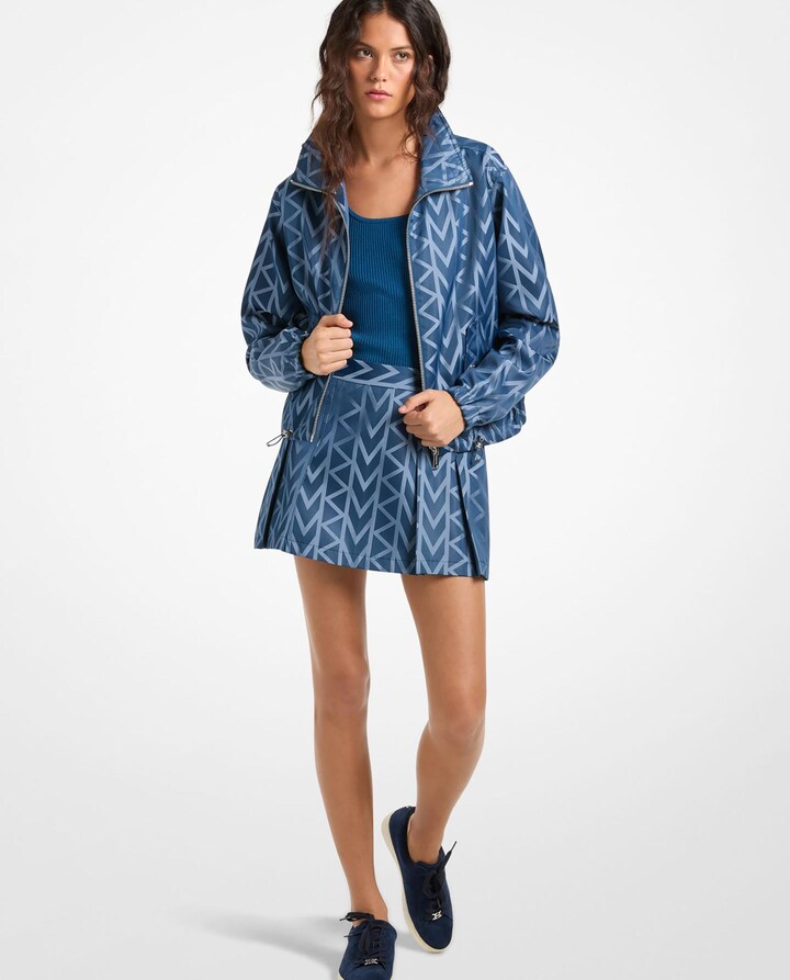 Com o nosso MK2000 estampado, este casaco com fecho de correr traz estilo tradicional ao teu guarda-roupa casual. Com corte descontraído, apresenta um fecho de correr e uma silhueta confortável que é perfeita para usar com camadas. O estilo versátil funciona igualmente bem para tarefas de fim de semana ou noites descontraídas. Completa o visual com a minissaia a condizer para um conjunto marcante.