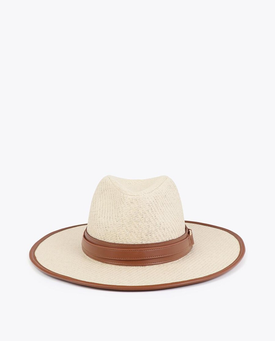 Adiciona estilo com o nosso chapéu bicolor de aba larga e fivela personalizada. Ideal para qualquer estação. Já à venda!