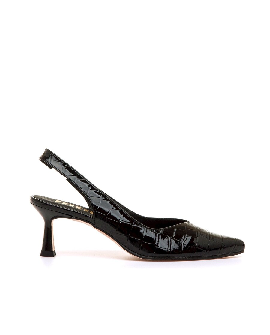 Sapatos de salto aberto para mulher da marca Mtng, modelo Ninette, com design tipo slingback. O seu salto médio fino com base quadrada oferece um extra de altura sem sacrificar conforto, enquanto que a biqueira afiada aporta um toque estilizado. A tira posterior com elástico garante um ajuste prático. Um modelo pensado para destacar em looks neutros ou elevar estilismos mais básicos.