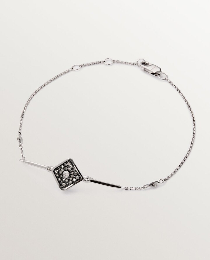 Pulseira de Ouro Branco de 9k com Forma de Losango e Diamantes