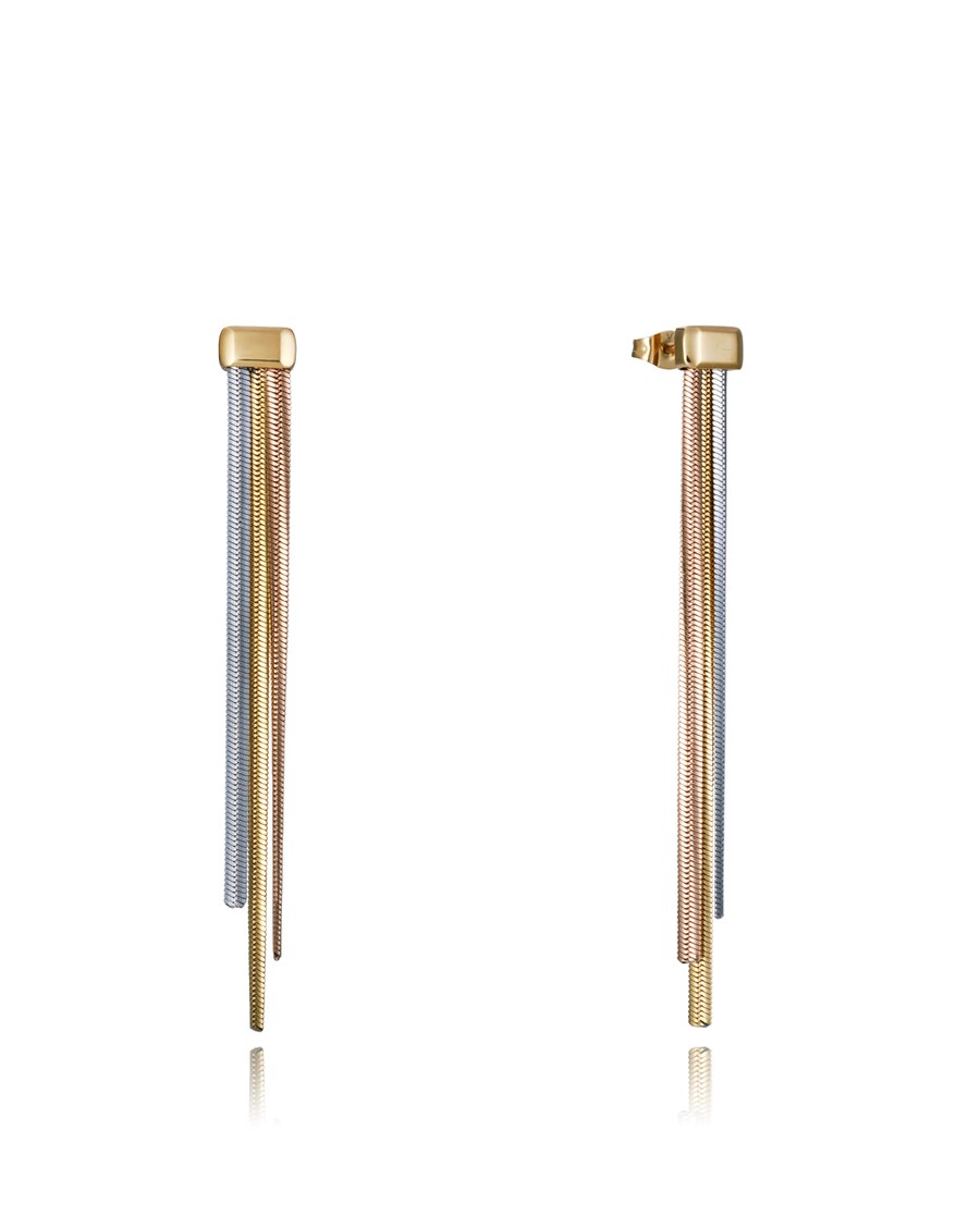Brincos Tricolor Chic de Aço com Corrente de Serpente